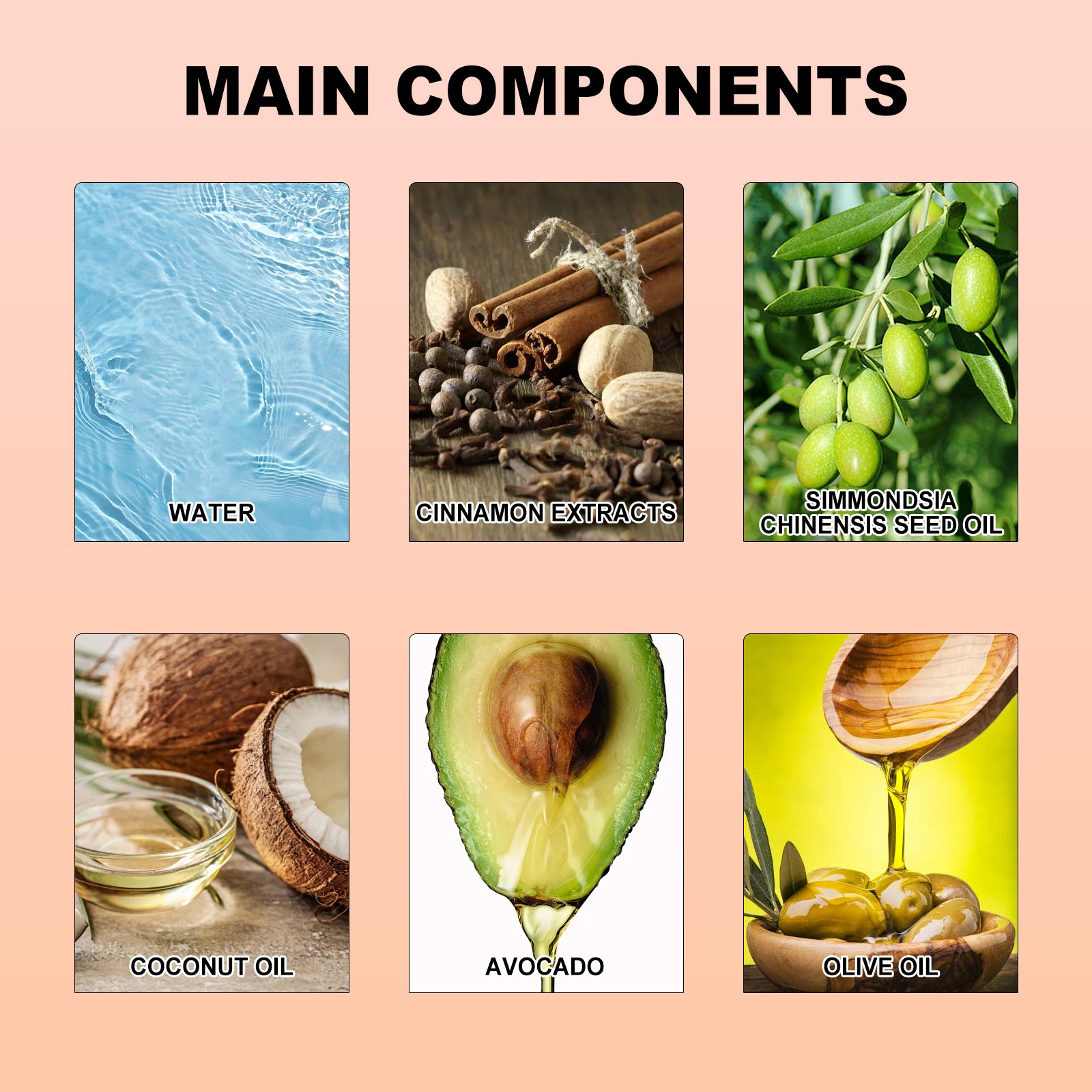Our Body Oil Handmade Cinnamon Bun Flavor contain Cinnamomum Zeylanicum (Cinnamon)Bark Extract, Simmondsia Chinensis (Jojoba)Seed Oil, Cocos Nucifera (Coconut)Oil. It can deeply moisturize the skin, replenish moisture, effectively relieve dry skin, and make skin soft and moist, help to increase skin elasticity, and strengthen skin firmness. Its use method is very simple: clean and dry the body skin, take an appropriate amount of this product, and evenly apply it to the body, gently massage with the palm of the hand until it is completely absorbed. It can improve dull skin, make your skin shine, add a variety of plant extracts, mild ingredients, suitable for all skin types.