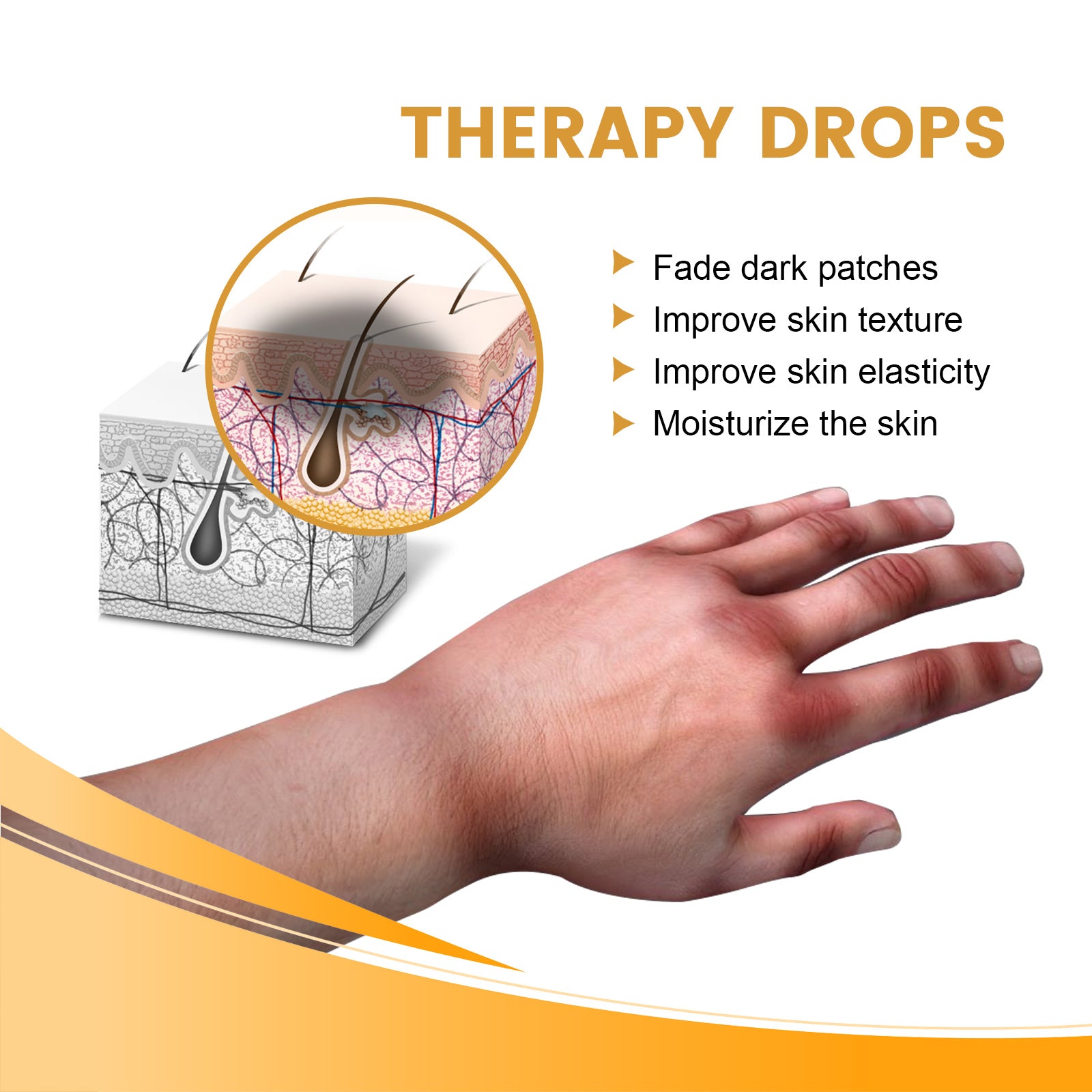 Our knuckle acanthoderm extract contains nicotinamide, glycerin, allantoin. It can eliminate dark pigmentation, moisturize the skin, soothe the symptoms of itchy skin, improve skin texture, effectively treat increased melanin resulting in deeper skin pigmentation, help moisturize and nourish the skin, thereby reducing dryness and pigmentation, making the skin look healthier and have a more even complexion. Exfoliation can help lighten dull skin by removing the top layer of dead skin cells that can cause dullness or uneven skin tone. The way to use it is simple: clean and dry dark skin, after cleaning, apply oil to the skin and massage, wait until it is completely absorbed, and apply it more frequently to achieve amazing results. Lighten dark spots, improve skin quality, improve skin elasticity, moisturize skin, fade skin melanin, help lighten skin tone, thin damaged skin.