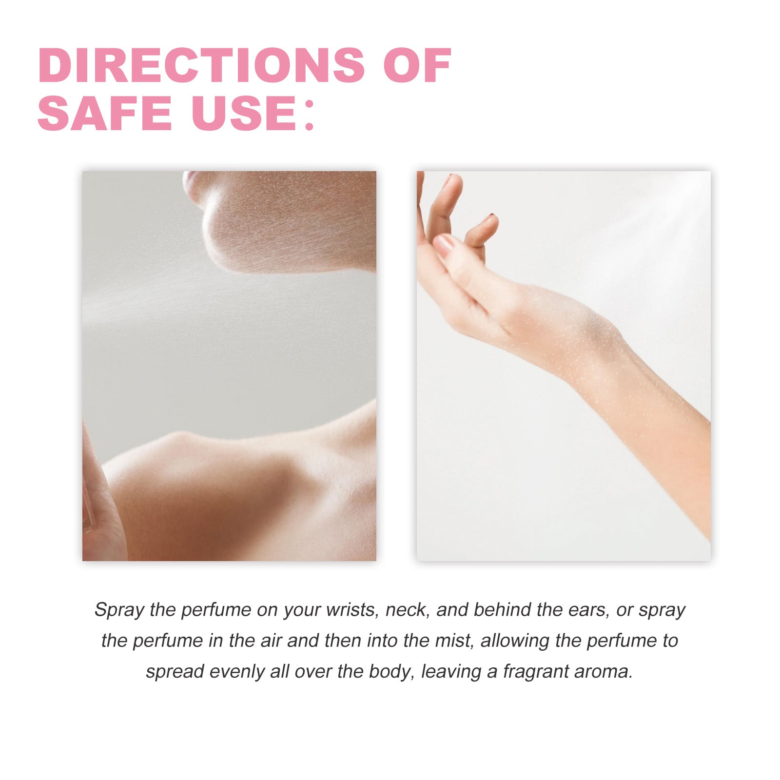 Our pheromone perfume (Rose flavor) contains thyme extract, jasmine extract, tea extract. It can make the fragrance lasting, deepen the charm, enhance the attraction, the fragrance is distributed quickly, suitable for any occasion. Its application is simple: spray the perfume on the wrists, neck and behind the ears, or spray the perfume in the air and then into a mist, allowing the perfume to spread evenly throughout the body, leaving a fragrant aroma. Pheromone perfume (rose scent) releases a charming aroma that leaves the body smelling fresh all day long.